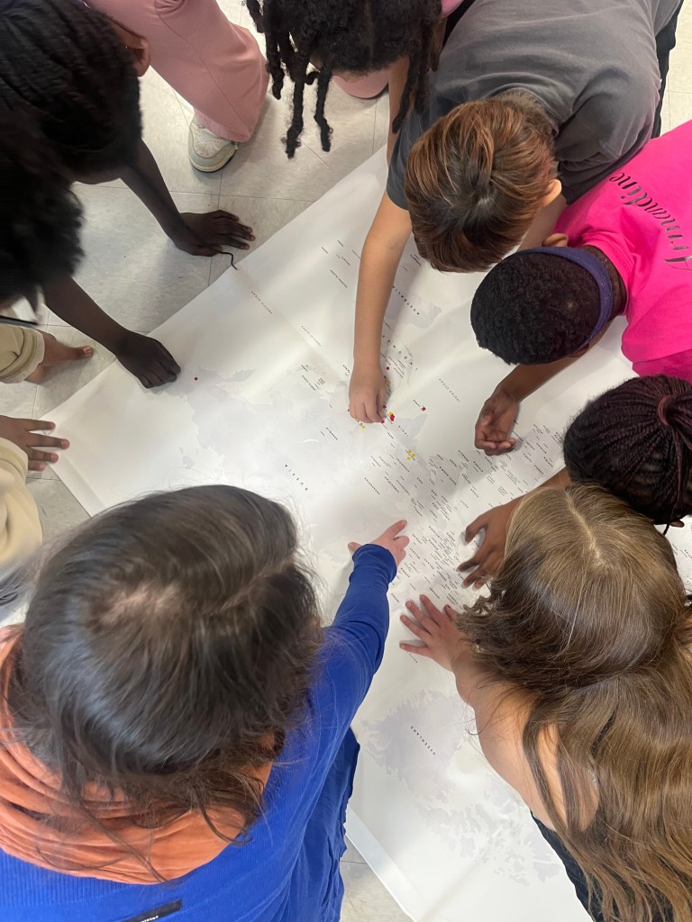 Les élèves ont été intrigués de découvrir que le t-shirt qu’ils portaient pouvait avoir traversé la planète entière — et qu’il avait été fabriqué par des personnes vivant parfois à l’autre bout du monde.