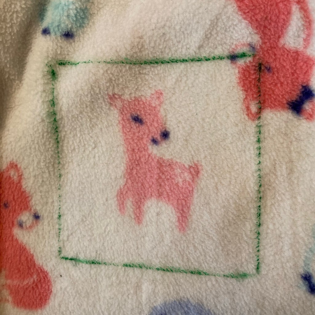 Comme mon tissu polaire à des motifs, je fais bien attention à centrer mes motifs.