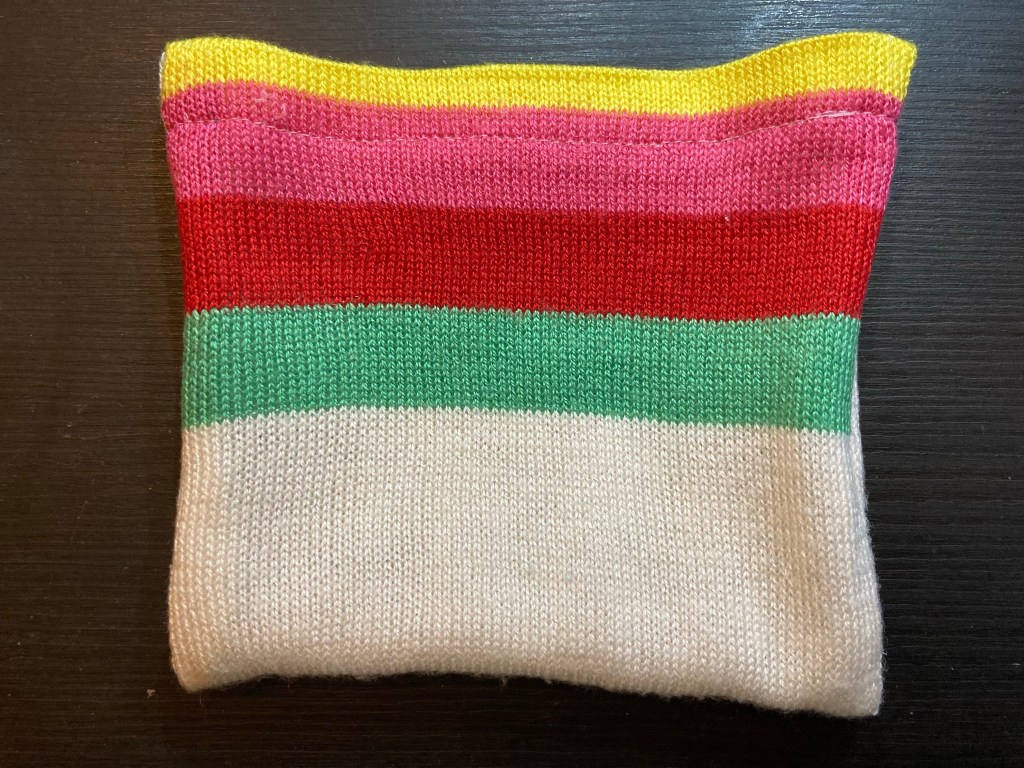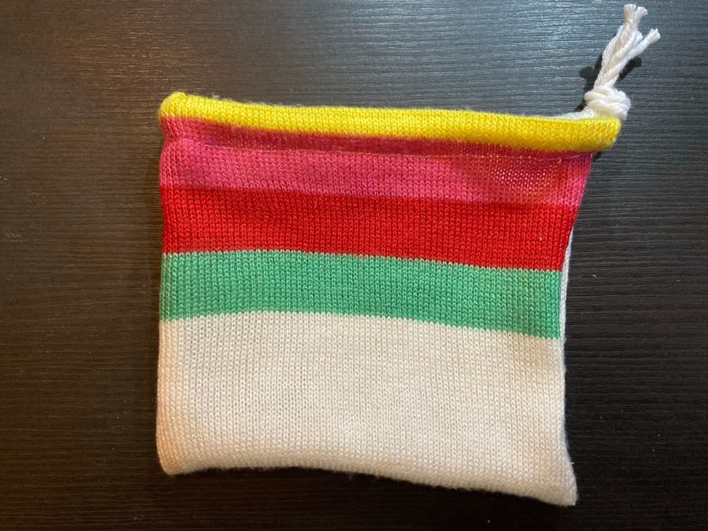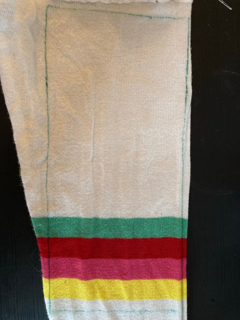 Normalement on garderai ce pull pour les autres activités peinture. Ceci dit, si vous en avez déjà un, alors je vous montre ici comment j’ai transformé un pull en pochette à savon.