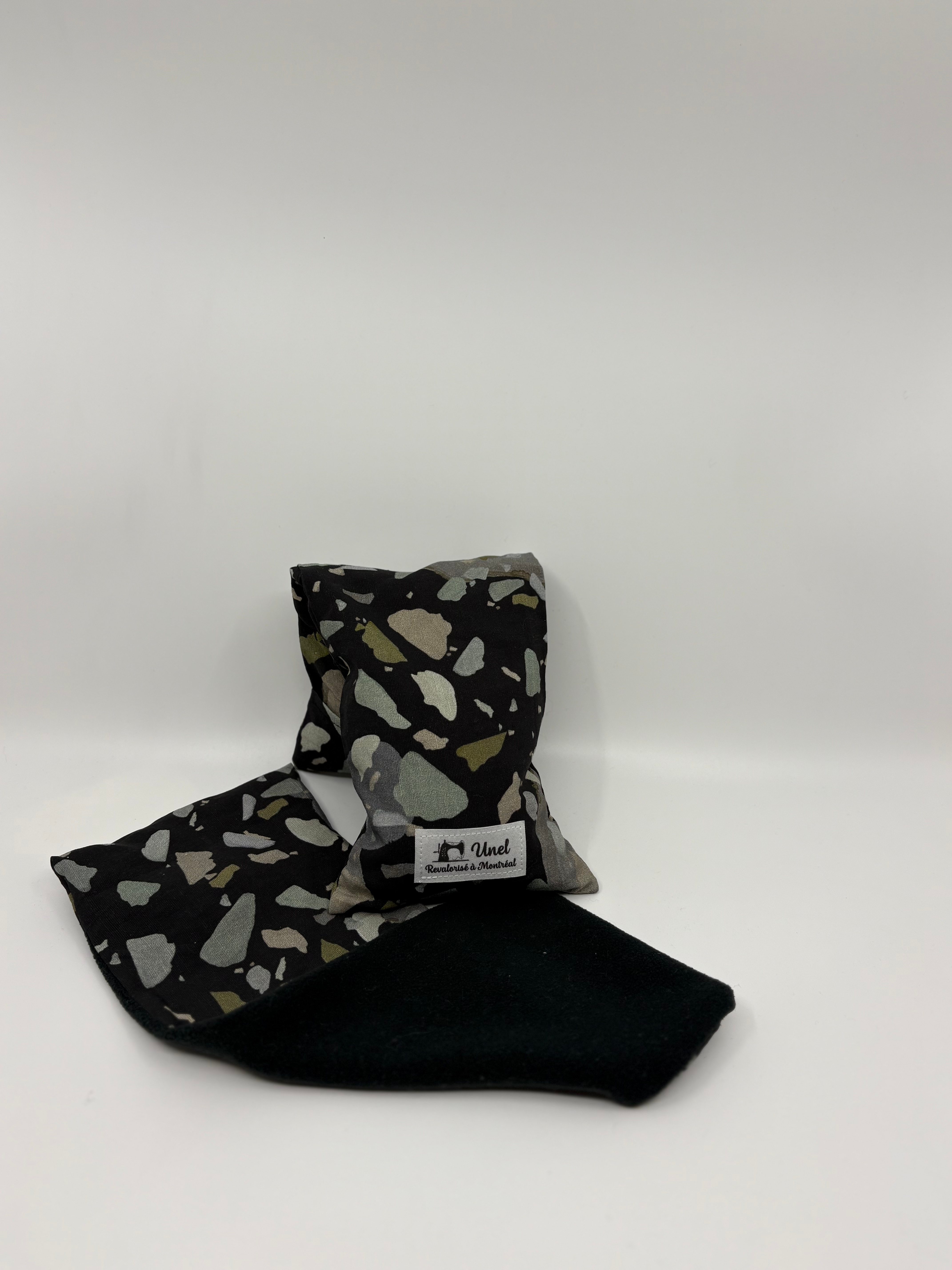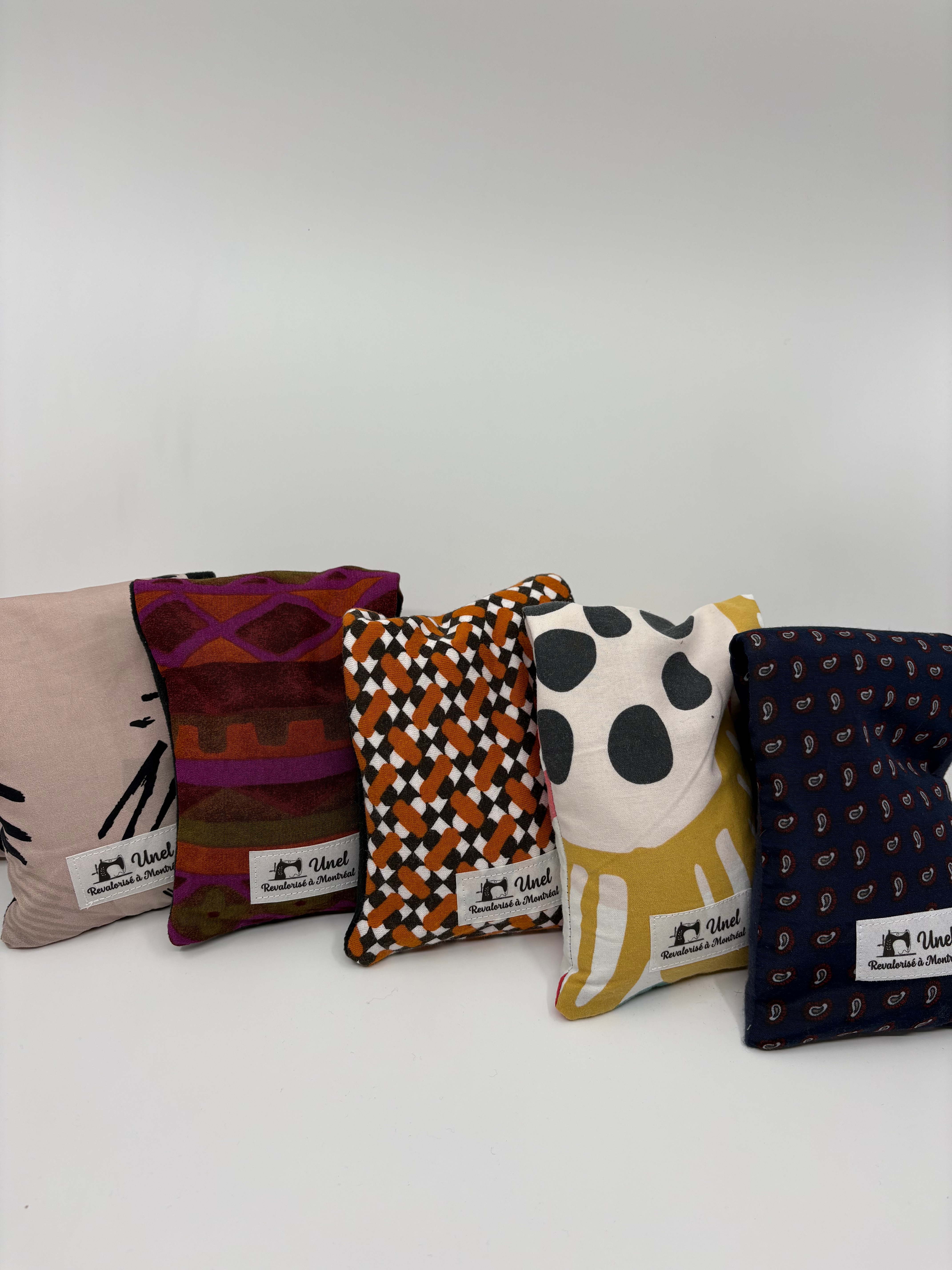 Découvrez notre bouillotte sèche écologique déhoussable à motifs, conçue pour offrir un coussin naturel, chaud ou froid, fabriquée à Montréal. Fabriquées à partir de vêtements et autres tissus récupérés, ces bouillottes sont un choix écologique pour se détendre. Le sac, fais à partir draps, contenant les graines de lin garantis une qualité authentique et locale.